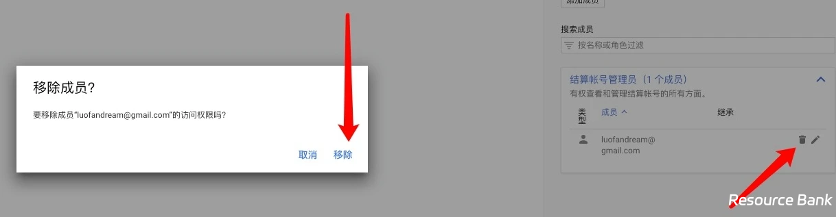 1.进入你的Google Cloud控制中心 https://console.cloud.google.com/ ,然后进入到 “结算” -> “我的结算账号” ,然后看下右边的,在里面添加一个成员。