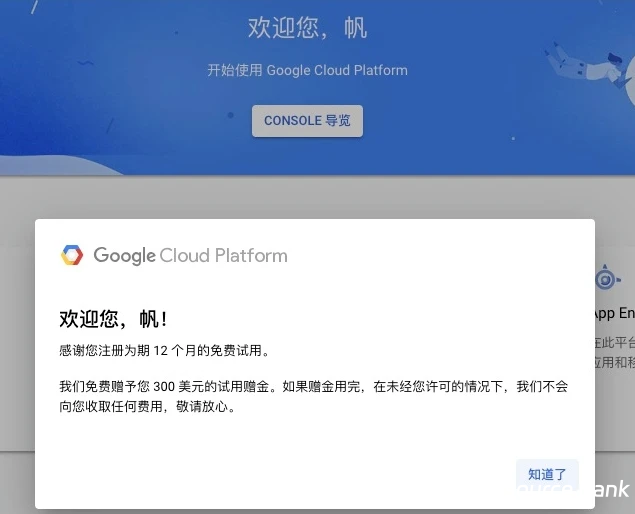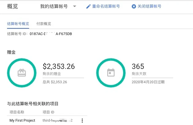 4.搞定了上面的,重新进入Google Cloud中,就可以看到已经到账了。