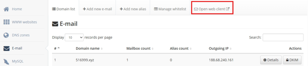最后点击Open web client网页登录你的邮箱,就可以用属于你的域名邮箱收发件啦!