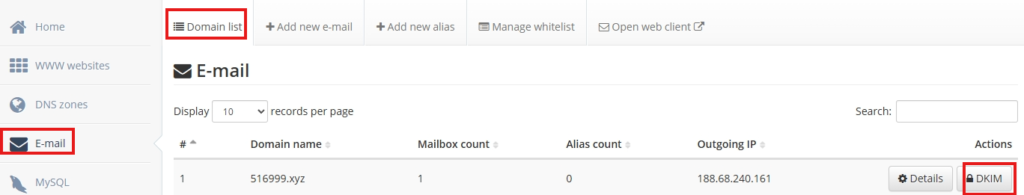 点击域名右边的DKIM,